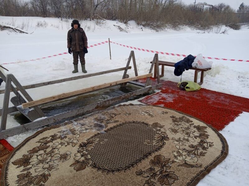 В селе Здвинск на реке Каргат устроили иордань. Настоятель Здвинского храма Иоанна Богослова, Михаил Прут, освятил воду в купели. Затем к иордани пришли жители села и гости района.