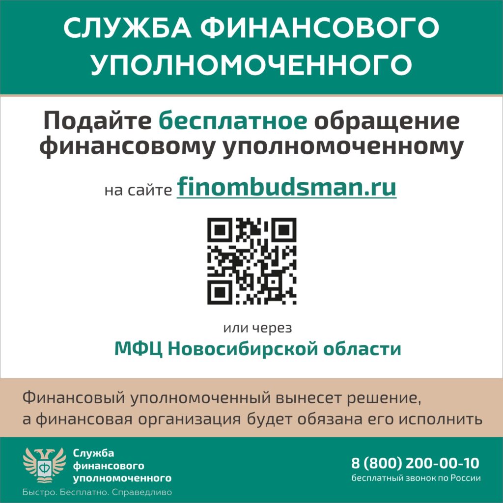 Если спор с финансовой организацией не урегулирован – подайте обращение финансовому уполномоченному на его официальном сайте или через МФЦ Новосибирской области.