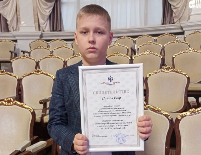 Награды получили стипендиаты губернатора региона. В этом году 171 талантливых юношей и девушек из 33 муниципалитетов, профессиональных и высших учебных заведений Новосибирской области удостоились почетных знаков. Среди них – Егор Павлов из Здвинской детской школы искусств, ученик отделения «Хоровое пение». Его наставники: преподаватель Наталья Отрубянникова и концертмейстер Никита Фуркадо.