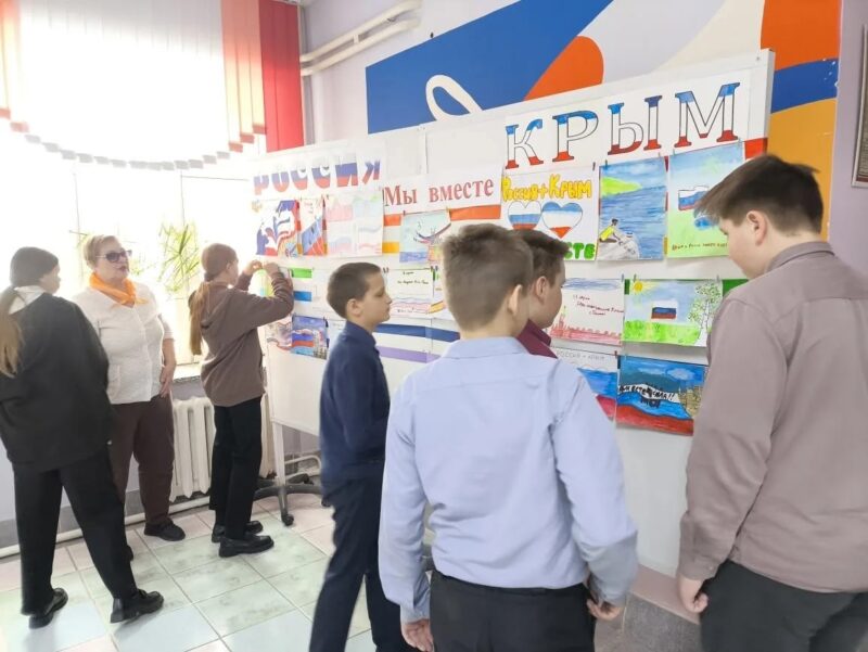 В Лянинской школе советником директора по воспитанию Тамаров Петровной Ходячих и ребятами из совета детских инициатив была организована выставка рисунков «Россия. Крым. Мы вместе». Помощь в ее реализации оказали классные руководители Дарья Андреевна Кулешова, Алла Васильевна Неваева и Светлана Анатольевна Мишина.