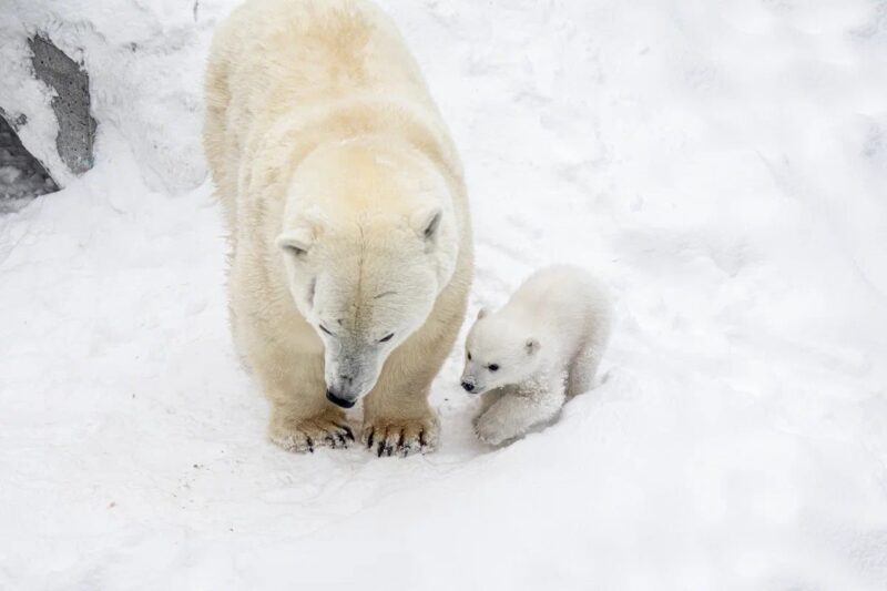 В зоопарке города Новосибирска радостная новость: у белых медведей пополнение. Медвежонок родился 7 декабря 2025 года, но новость об этом на странице зоопарка появилась недавно. 2 месяца медведица не покидала свое логово, и лишь недавно они с малышом вышли в вольер.
