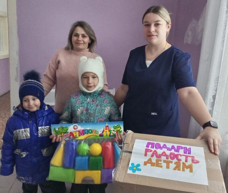 Отделение дневного пребывания МКУ «КЦСОН Здвинского района» в очередной раз организовало акцию «Подари радость детям» для больных малышей. Специалист по социальной работе Елена Шаблей вместе с детьми привезла в стационарное детское отделение Здвинской ЦРБ коробку с игрушками, канцтоварами и книгами.
