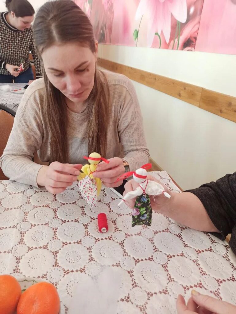 В конце мероприятия педагоги дополнительного образования дома детского творчества провели мастер-класс с родными военнослужащих по изготовлению оберегов.